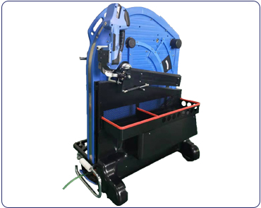 GG-008 Ergonomic pallet strapping machine with an electric chain lance motor is hot in all industries. It allows for elegant strapping without having to bend down. This comfortable process will enable you to glide the strapping machine in front of the pallet effortlessly. The chain lance then pulls the strap around the pallet. The strap is then tensioned and welded securely by a sealing head.